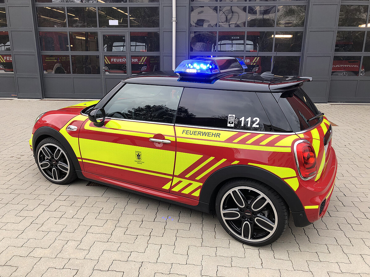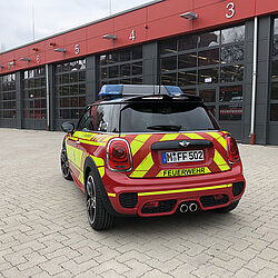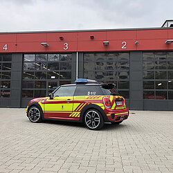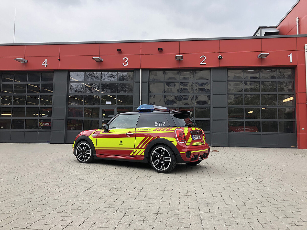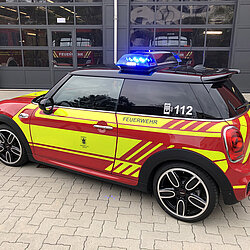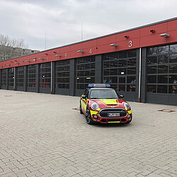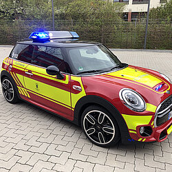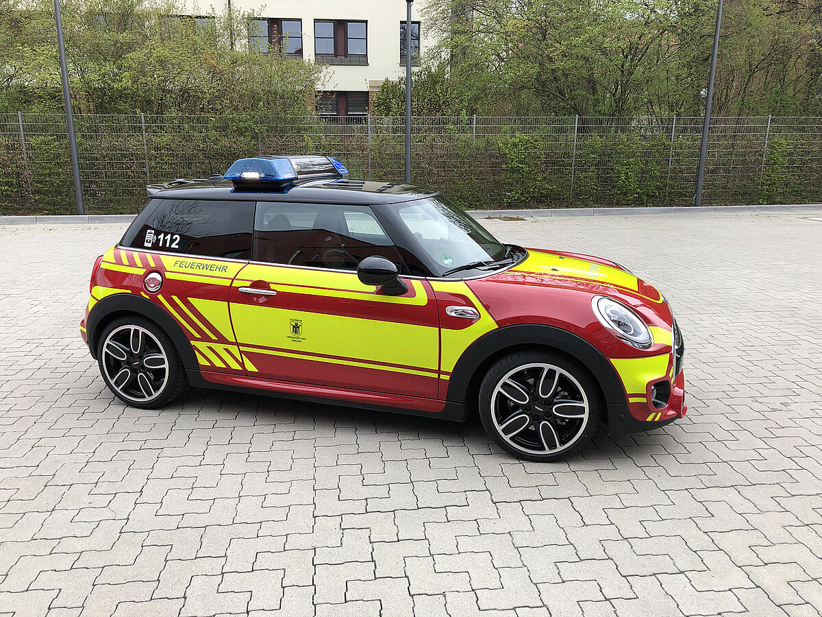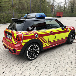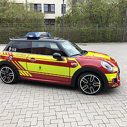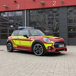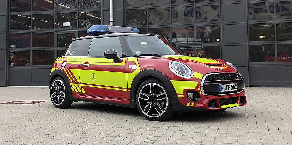 Der MINI gehört zum Fahrzeugpool der Stadtbrandinspektion der Freiwilligen Feuerwehr München.