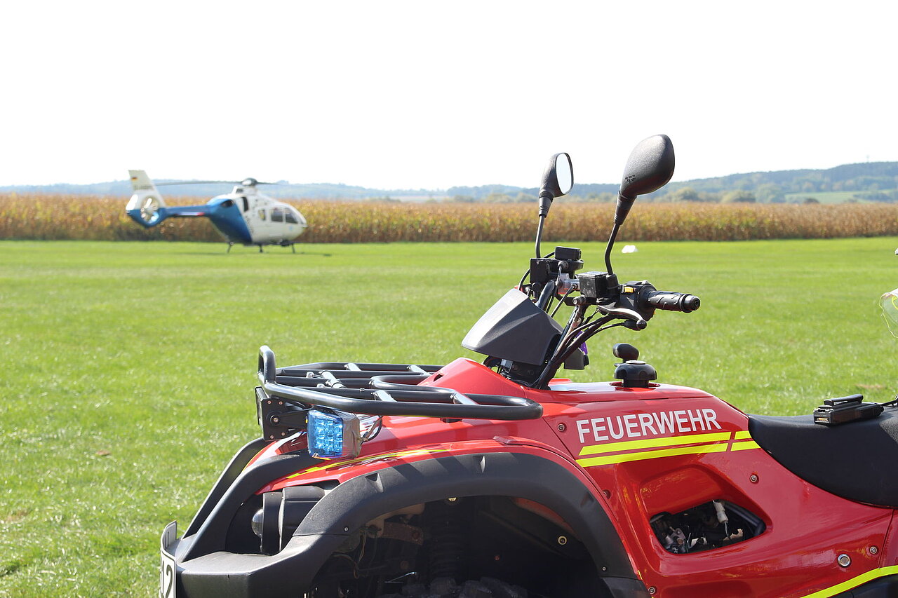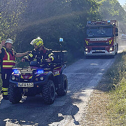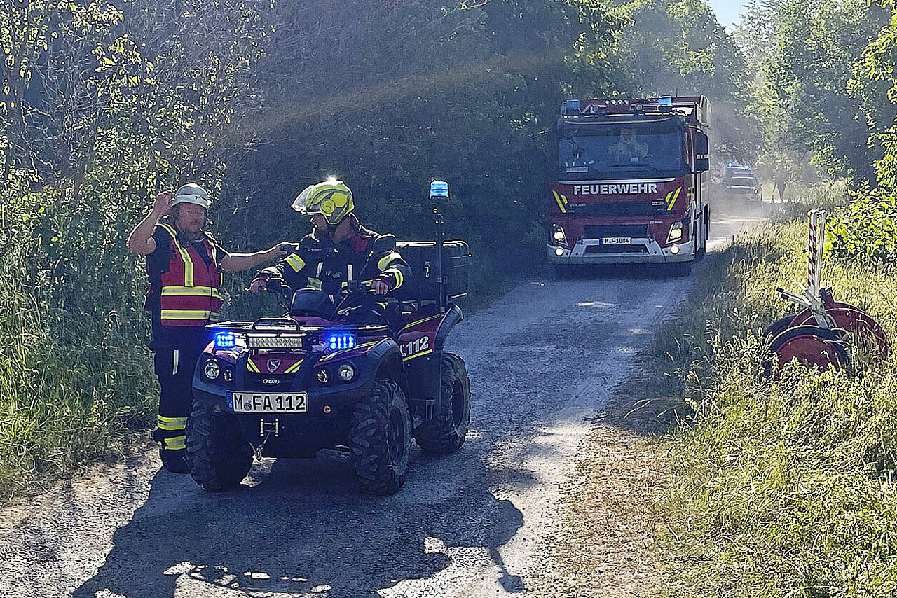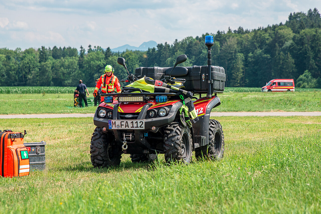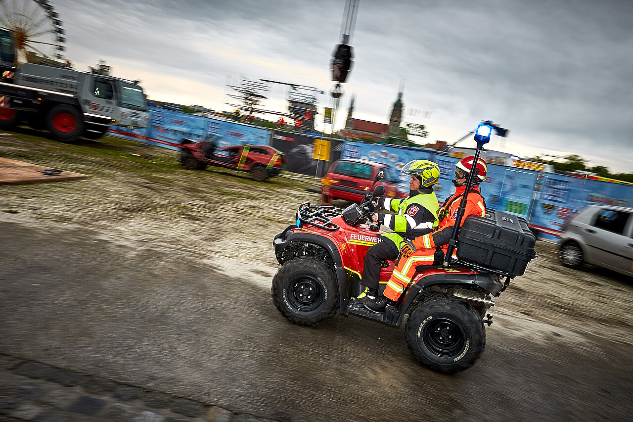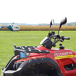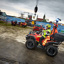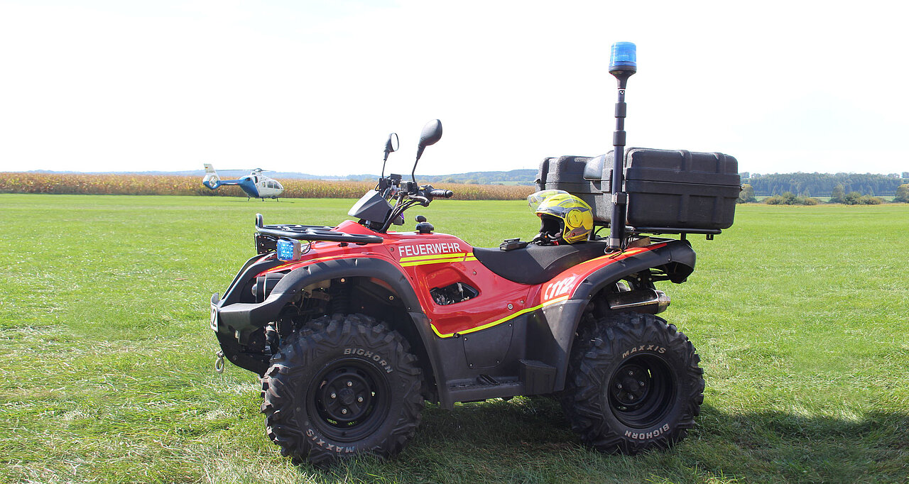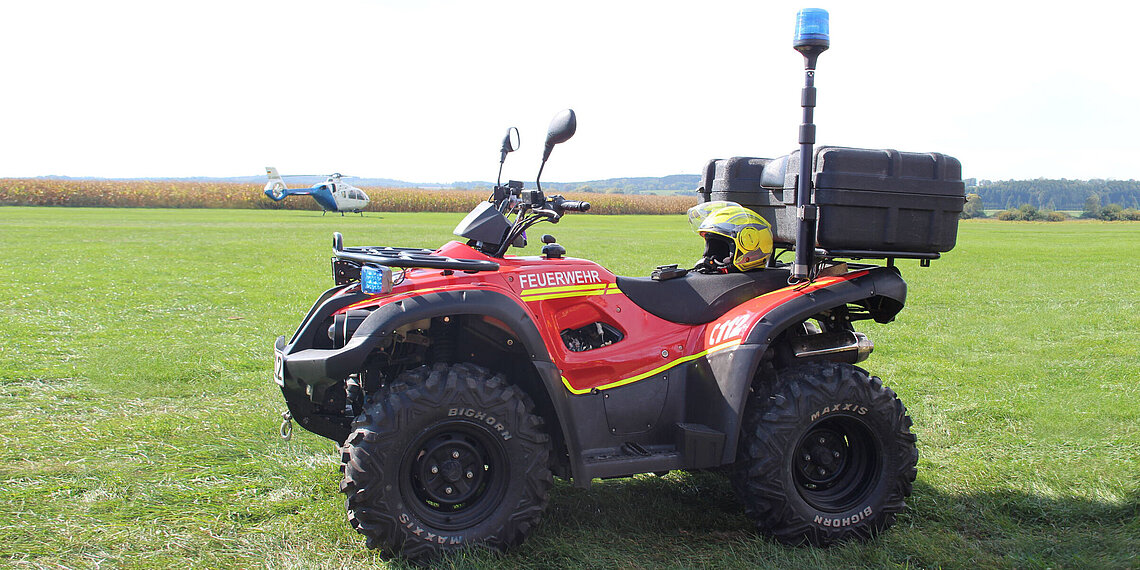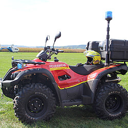 Das Quad der Abteilung Ludwigsfeld Fasanerie wird für Erkundungsfahrten bei Großschadenslagen, zum Materialtransport in unwegsamem Gelände, bei Wasserrettungs- und Waldbrandeinsätzen genutzt.