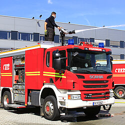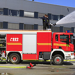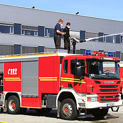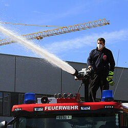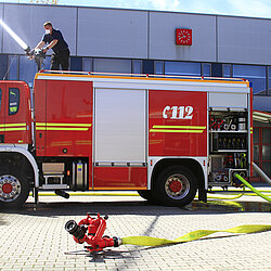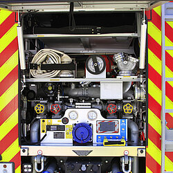 Besonderes | Wasserwerfer (Dach) mit Wasserabgabe von max. 2.500 l/min, Schaumzumischanlage FireDos, mobiler Wasserwerfer |