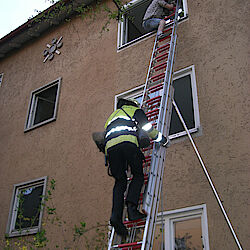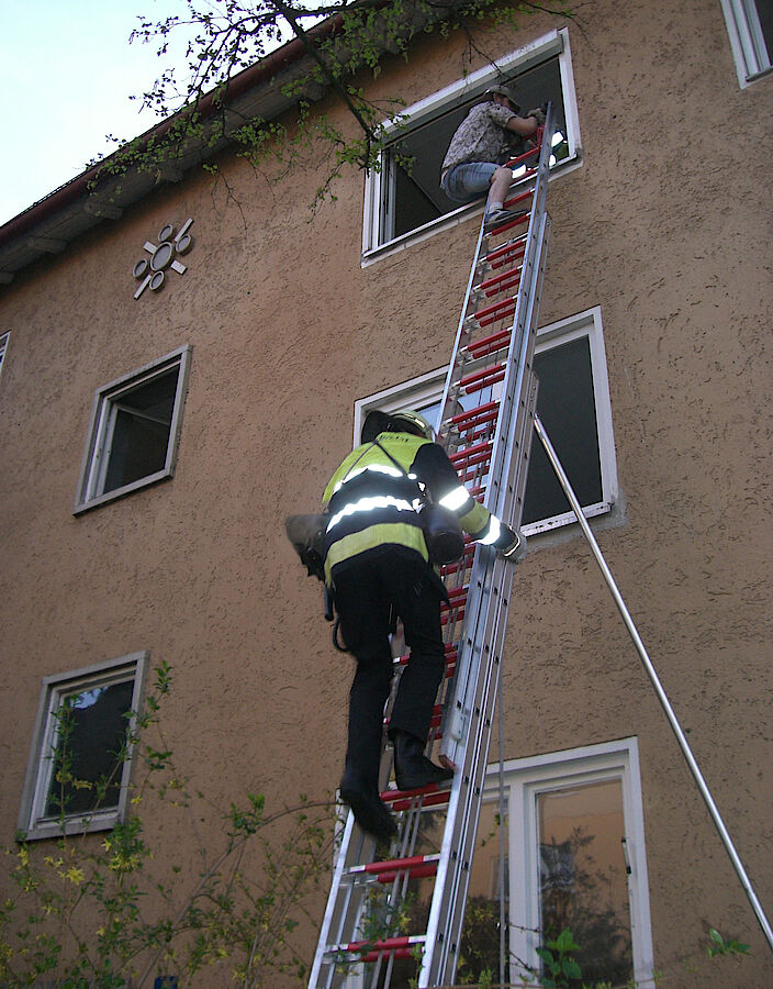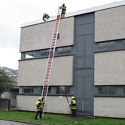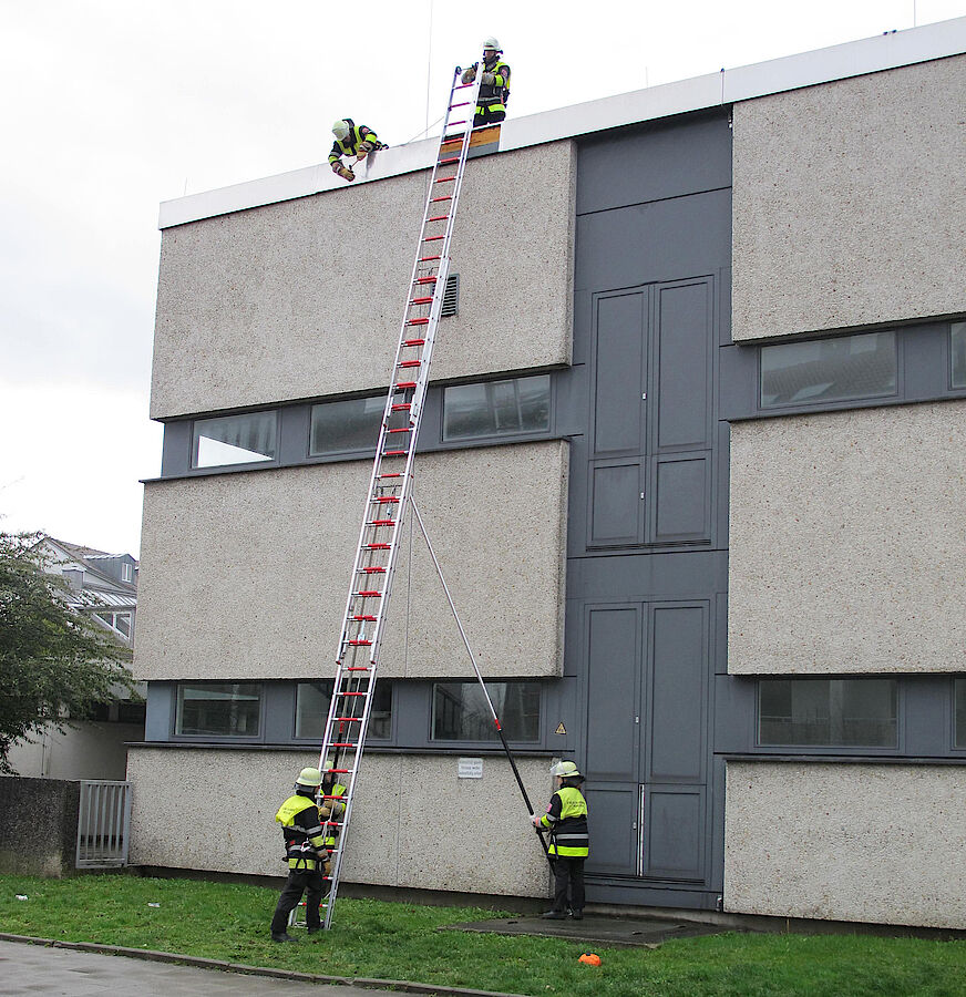 Mit über 12 Meter hat die Schiebleiter die größte Rettungshöhe unter den tragbaren Leitern. Das entspricht bei einem Wohngebäude etwa dem 3. Obergeschoss.