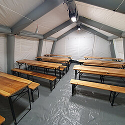 Kurzfristig kann die Verpflegeinheit auch als dezentrale Notfallunterkunft für Bürgerinnen und Bürger bei Strom- oder Wärmeverlust eingesetzt werden.